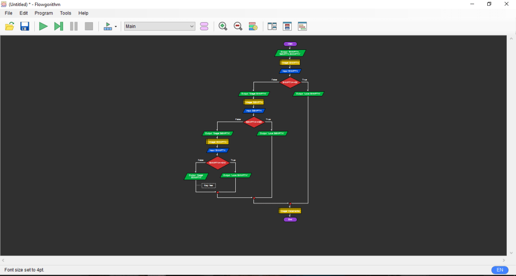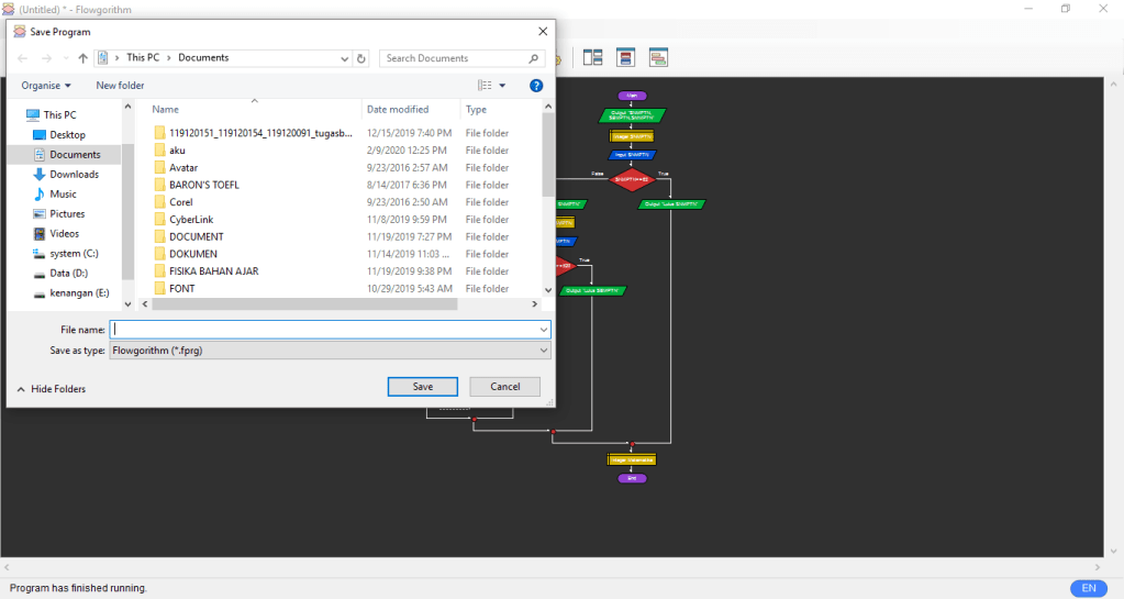 Langsung saja berikut langkah membuat flowchart di aplikasi flowgorithm :