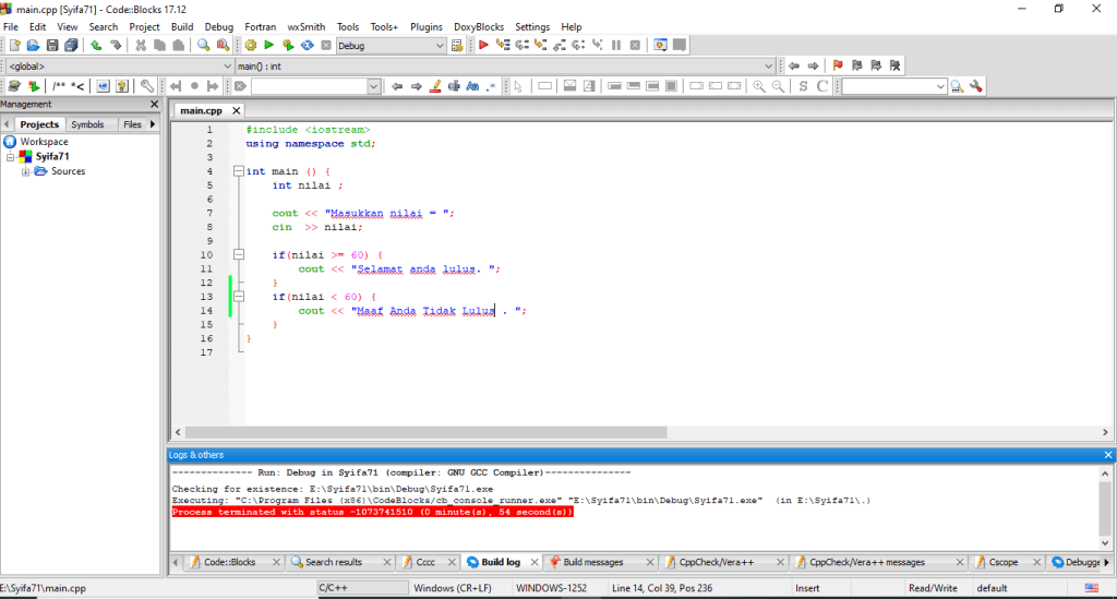 Melanjuti tulisan saya sebelumnya tentang tutorial membuat program C++ , Kali ini saya akan menjelaskan tutorial membuat program If, if-else, dan If-Else If di aplikasi Code::Blocks. Sebelumnya cara menginstal Code::Blocks sudah saya pernah bahas sebelumnya di blog ini, Jika ingin melihatnya anda bisa klik link ini.