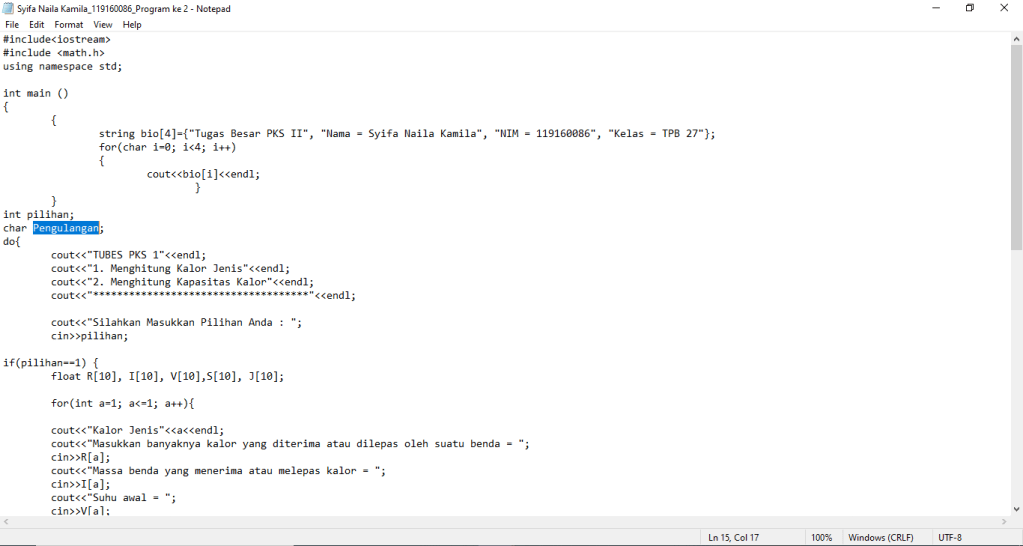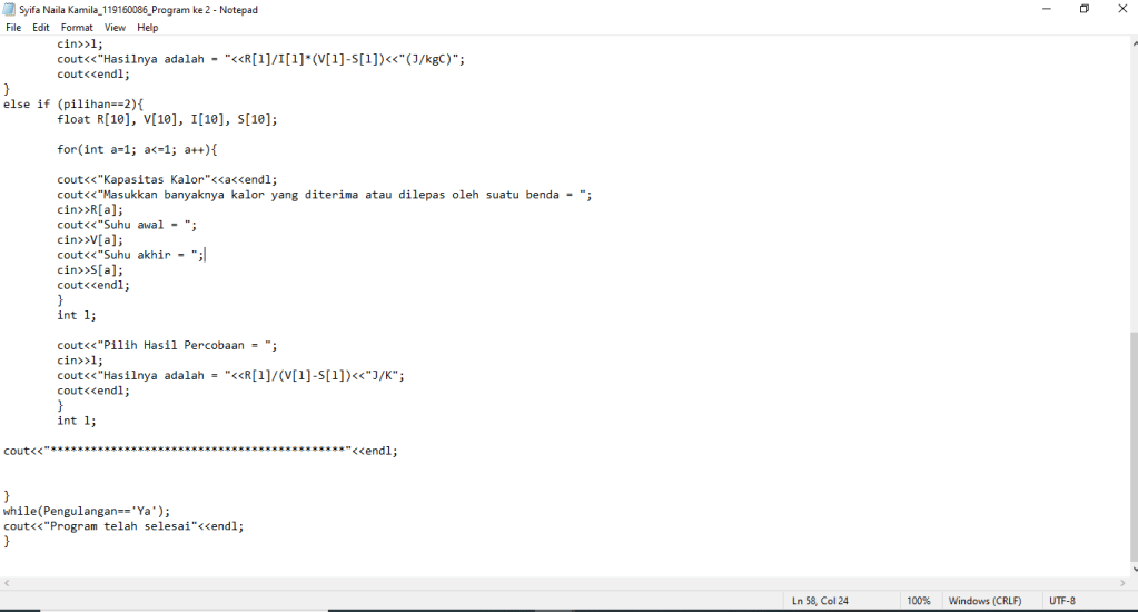 Program 2 Mencari Nilai Kalor Jenis dan Kapasitas Kalor