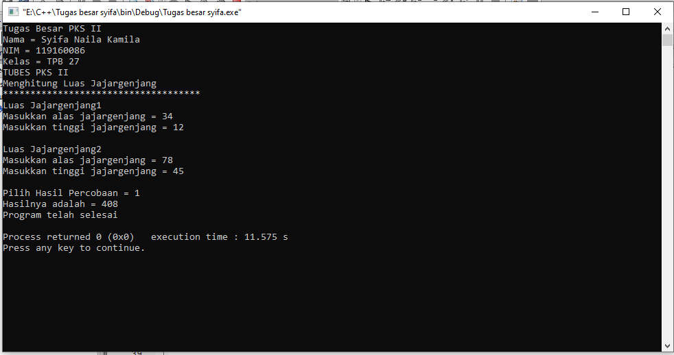 Tulisan blog kali ini mungkin menjadi tulisan terakhir disini. Hal ini disebabkan akan berakhirnya semester 2 yang berarti telah selesainya materi PKS II :(( . Pada tulisan kali ini saya membuat 2 program yang pertama program dalam bidang matematika, yaitu mencari luas jajargenjang dan yang kedua program dalam bidang fisika, yaitu mencari nilai kalor jenis dan kapasitas kalor.